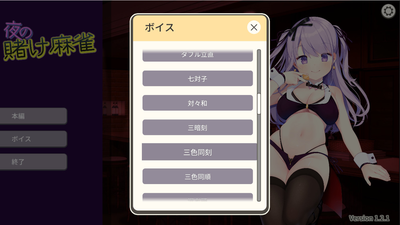“麻將黃油,規則是現代日麻,CG很頂而且有全程配音,不過cg解鎖比較麻煩,輸給上家、下家、對家各有不同的cg,需要計算點數直擊才能快速的全解鎖,比較考驗麻將功底,當然也可以一直瞎玩碰運氣就是了,補丁需要在官網下載,我放在完整評測裡面了,需要的自取。”