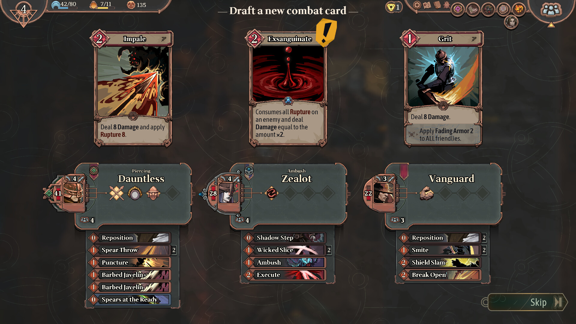 As We Descend is a strategy roguelike deckbuilder set in an apocalyptic world with dual-layered deckbuilding: you must play your cards right in both dangerous expeditions and the last city of humankind.