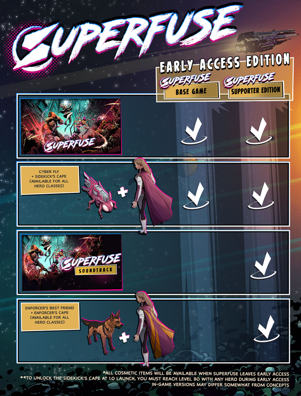 “When Superfuse leaves Early Access, we want to ensure that we have created a full version that reflects what is expected from a comic-book-styled ARPG set in space. We already have ideas about how that journey and result might look, but we will happily alter that trajectory with the feedback and input we will receive from all of you. Some of the additions we are hoping to implement include new campaign expansions, an additional hero, new loot, controller support, and more.
