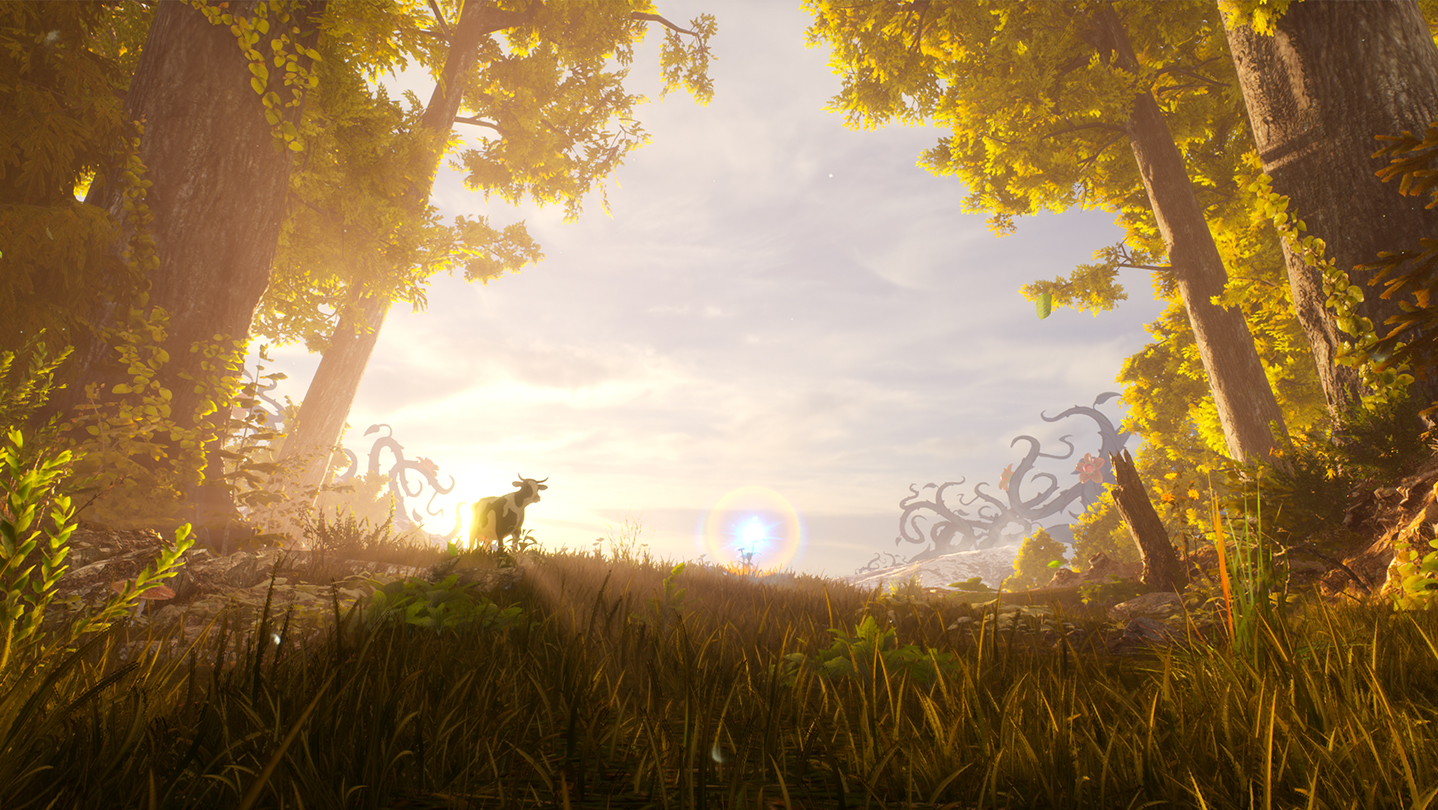 The game protagonist is a simple cow. Head-butting and kicking, eating grass, and plopping cow-pats are the only things that the Cow can do. Use these abilities to explore the game world, interact with a variety of environments, find new beneficial sorts of grass, solve puzzles, and crush enemies with your mighty horns!