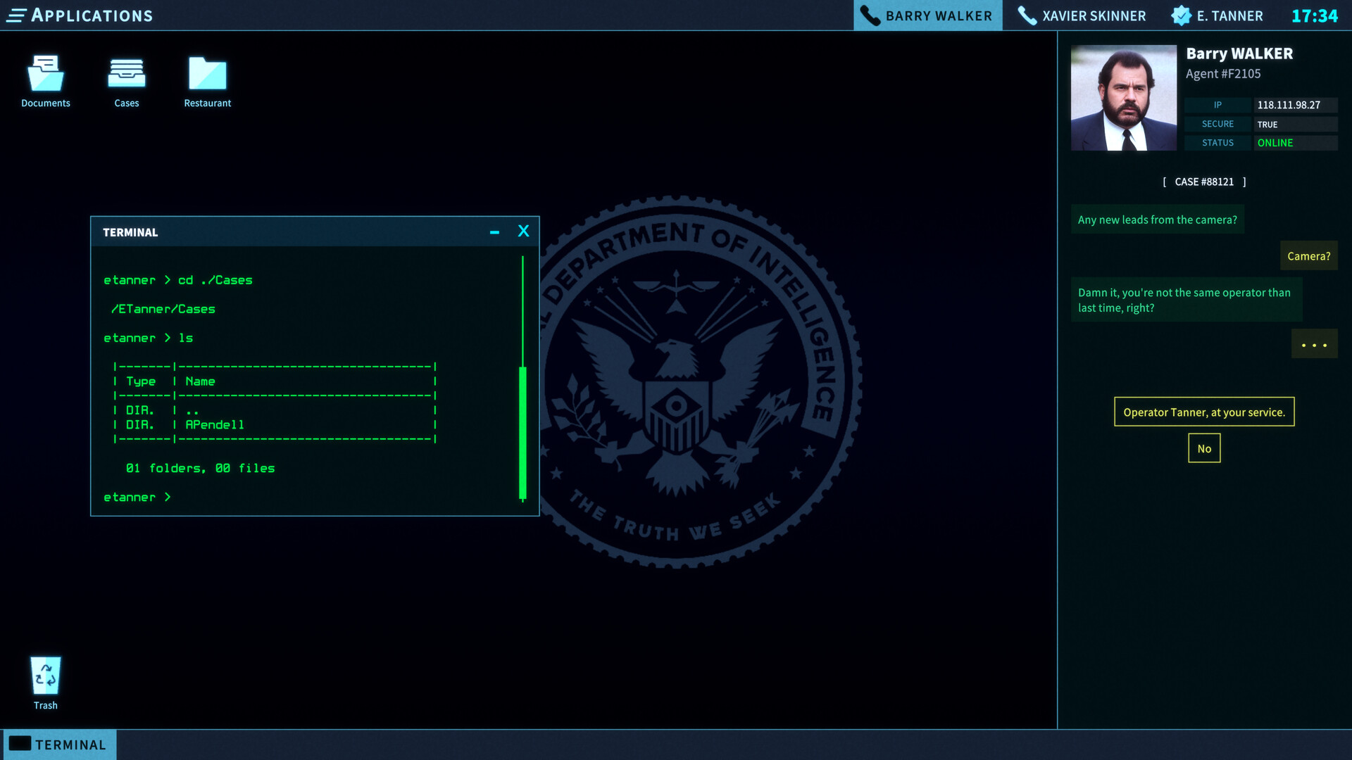 As an Operator, you will assist field agents by analyzing evidence on your computer and making deductions. Help them solve impossible cases in this immersive interface game full of plot twists and mysteries.