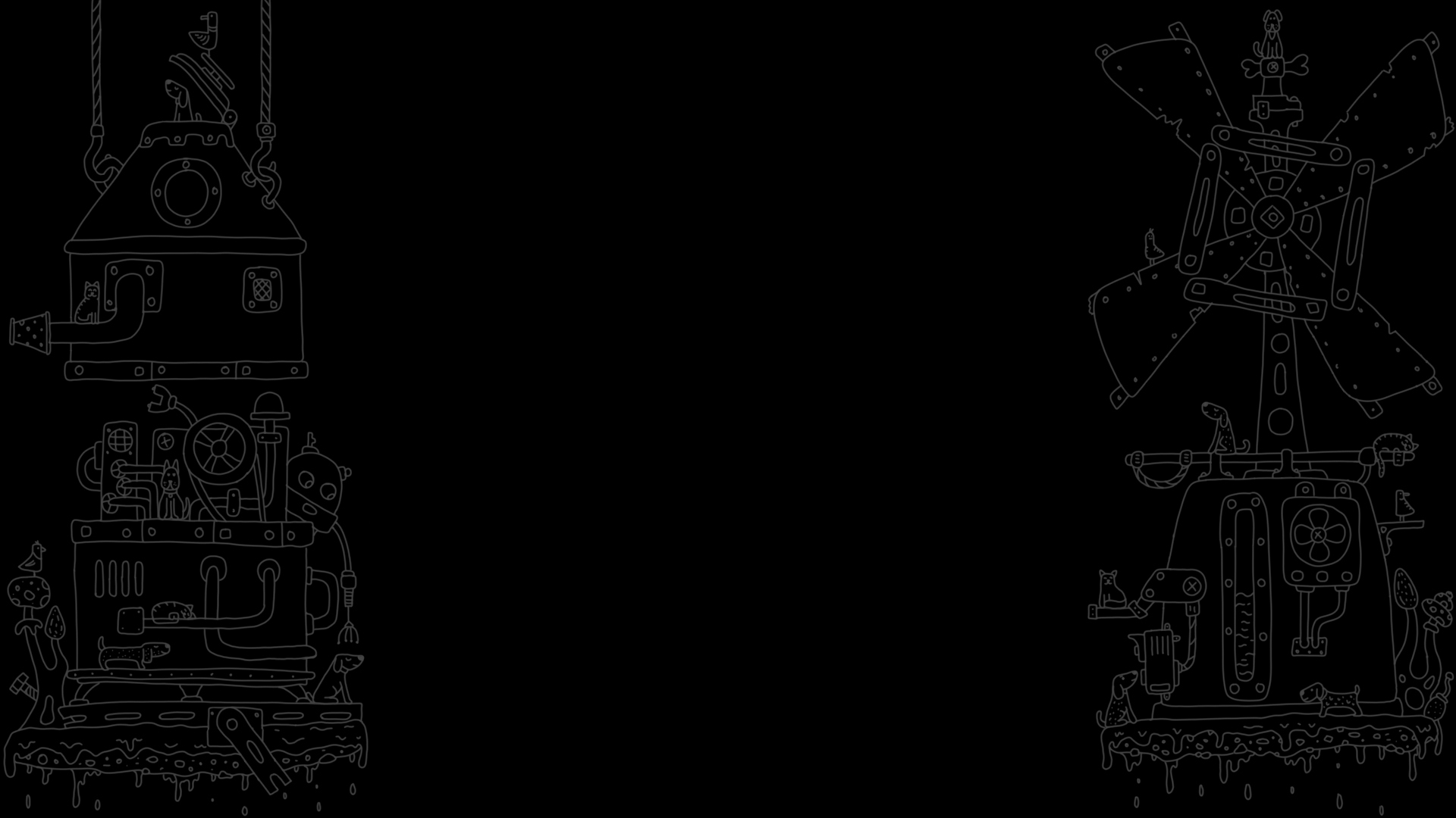 Black and white hand-drawn graphics in a cartoon style.