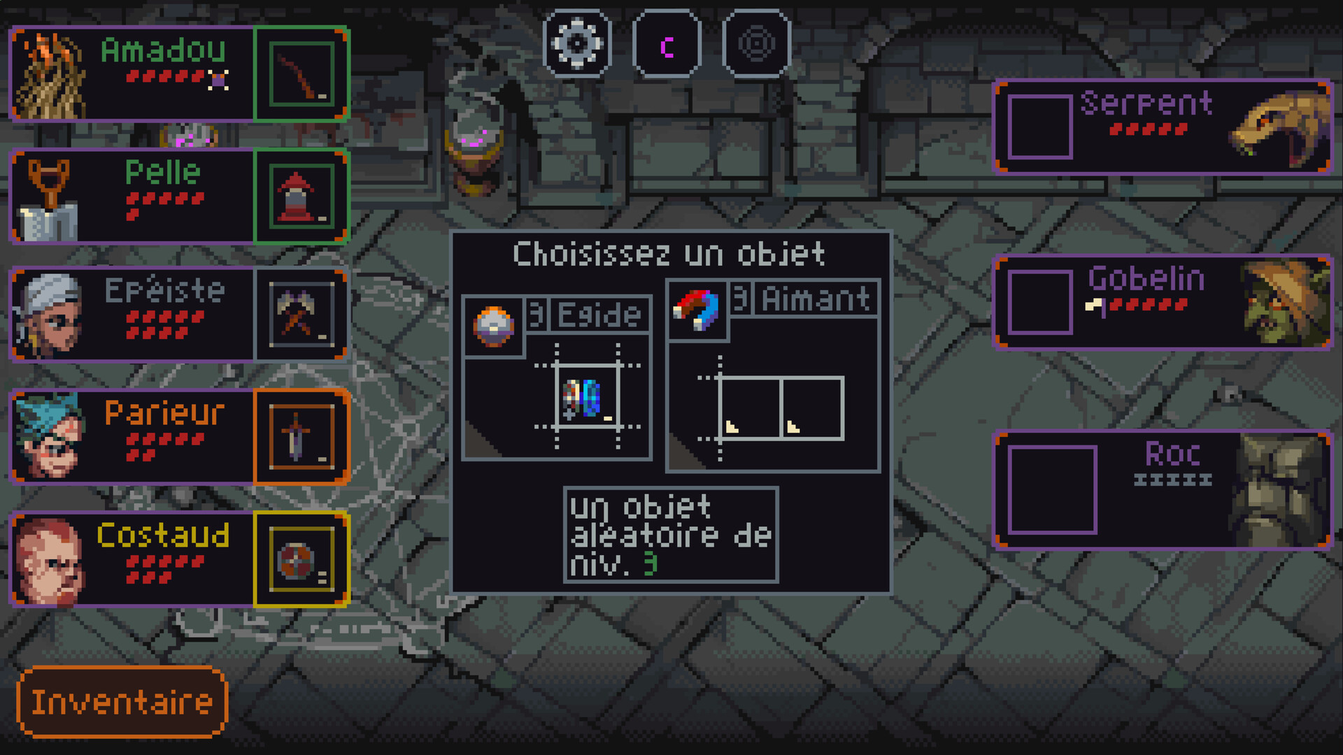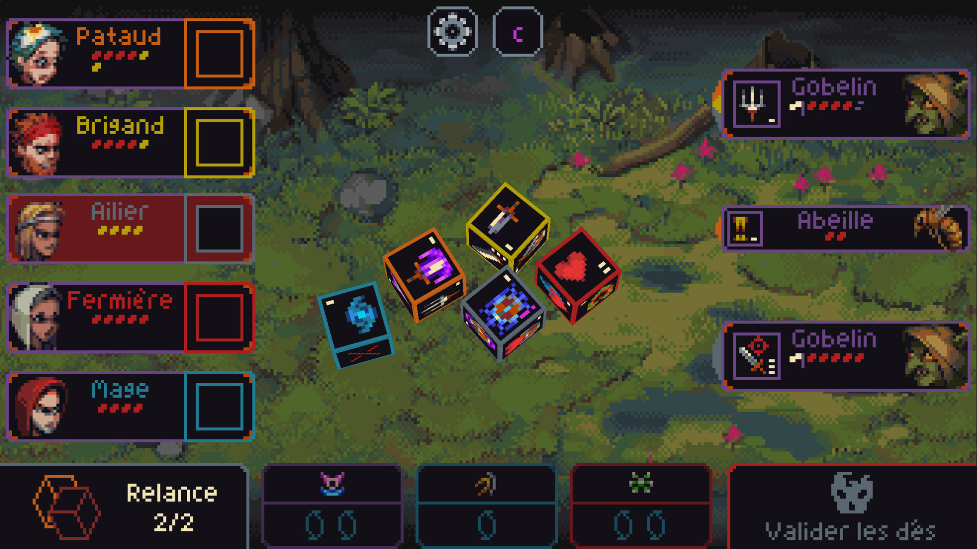 Contrôlez 5 héros, chacun ayant son propre dé unique. Combattez des monstres sur 20 niveaux et tentez de battre le boss final. Au moindre échec, vous devrez recommencer... alors progressez avec prudence (et un peu de chance !).