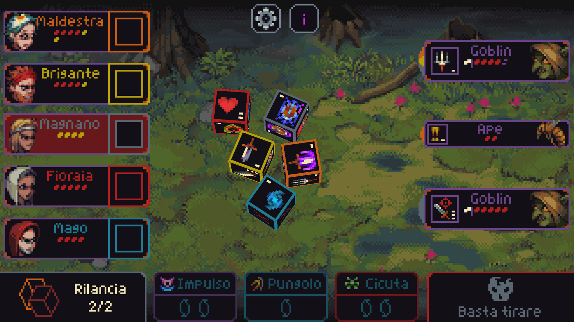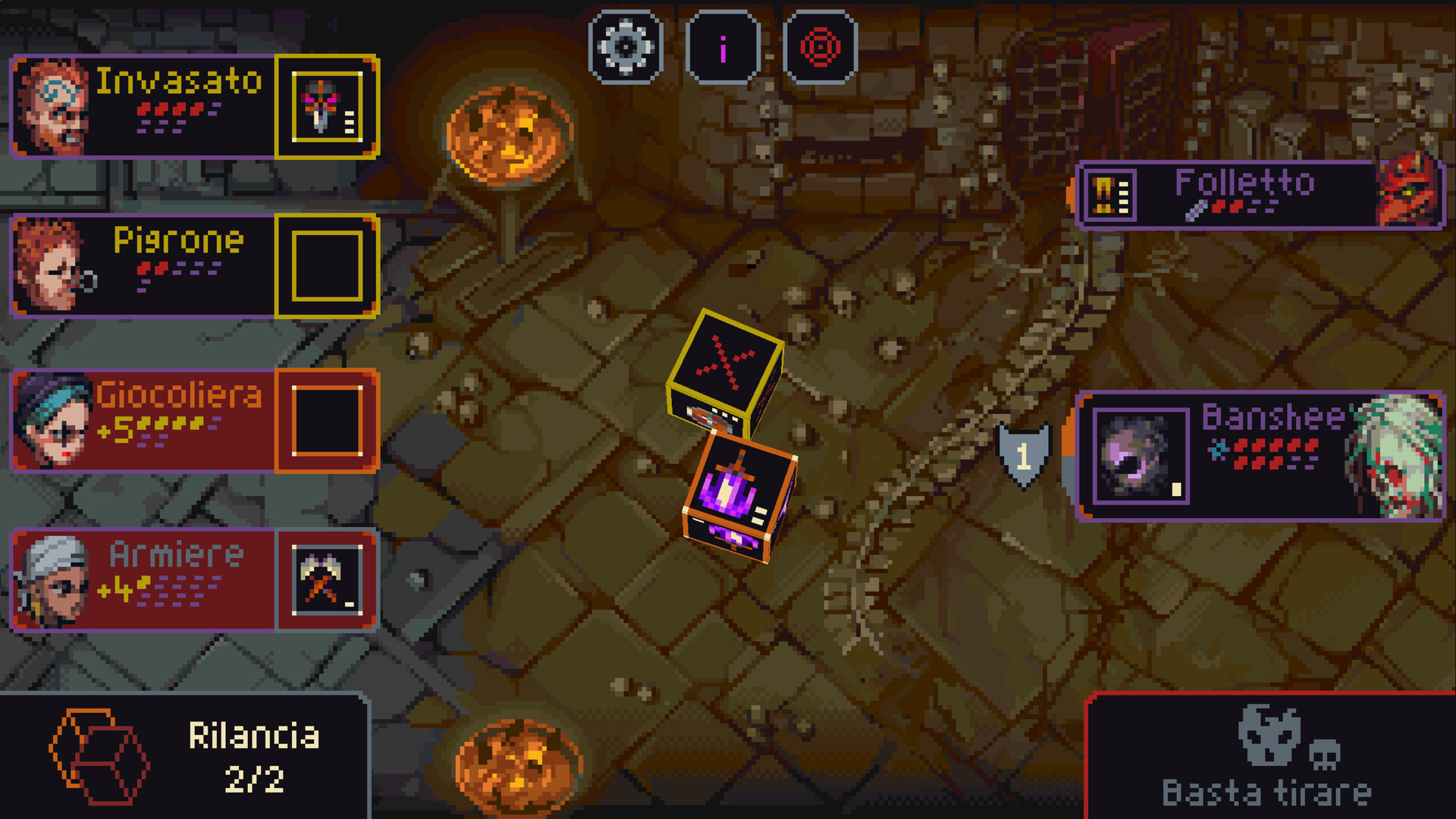 Roguelike tattico di combattimento con dadi. Prendi il controllo di 5 personaggi eroici, affronta mostri in un totale di 20 scontri e cerca di sconfiggere il boss finale. Se perdi una battaglia, ricominci da capo... quindi fai attenzione o quantomeno spera di avere la sorte dalla tua!