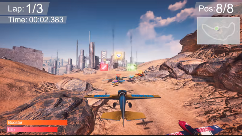 Dogfight Time is an aerial racing game with shooting mechanics. Race your opponents into the finish line, picking up objects to destroy opponents planes or protecting your plane from damage. Earn in-game money by completing matches, unlock new planes to race with. Try different Modes from championship to timed races. Bored to play alone? worry not, you can use split screen to play with anyone you like.