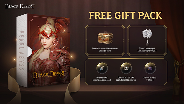 "Black Desert - FREE Gift Pack" has just been released as free DLC.