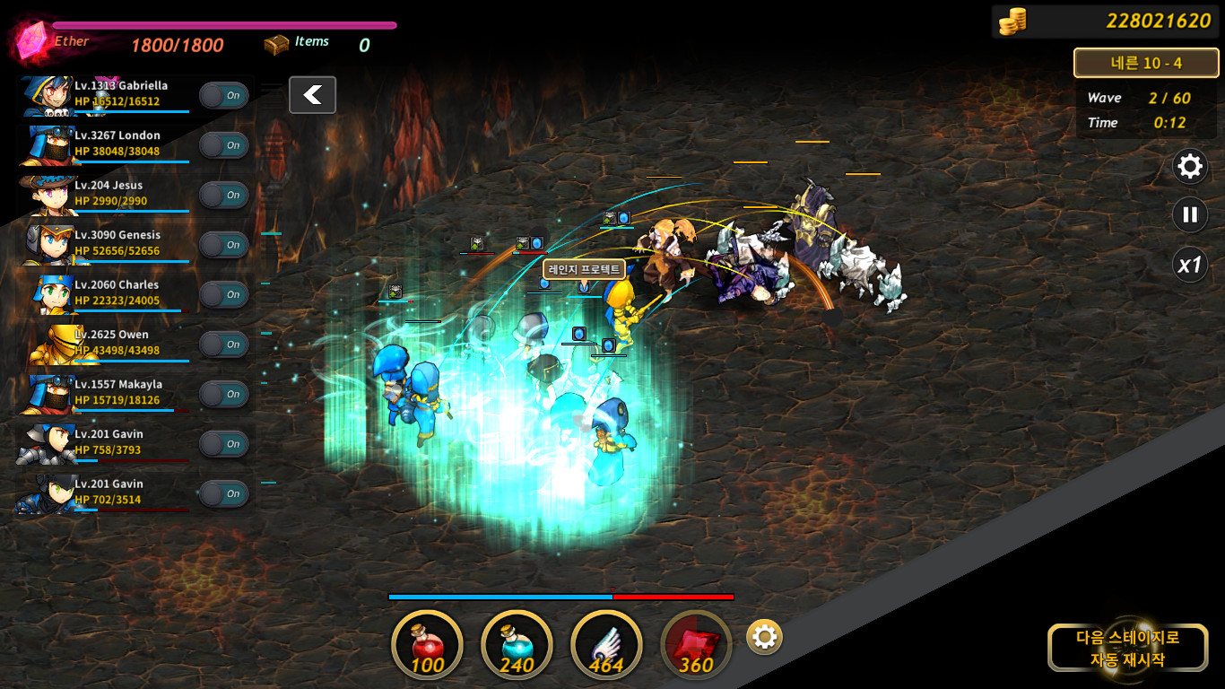 4. 전투에 돌입하고 나면 플레이어는 전투를 관전합니다. 필요에 따라 소모아이템을 사용해서 아군 유닛의 체력을 회복하거나 에테르를 회복시킬 수 있습니다.