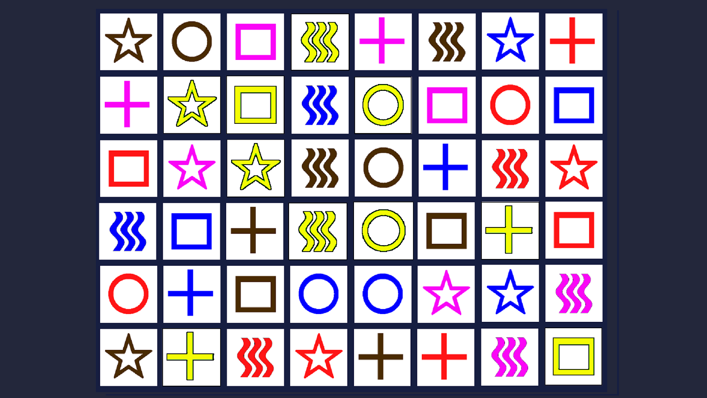• When players become very confident, they can change to triplets of matching images (6 rows yields 6*8=48 image locations)