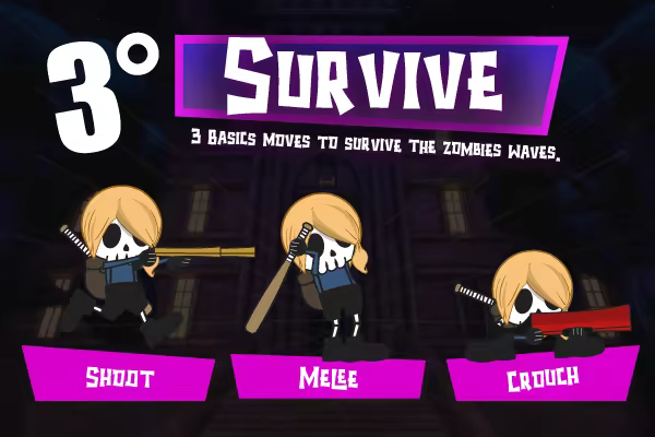 Spookykillers is a cooperative 2D shooter where your team must protect a refugee survivor NPC from waves of zombies until the countdown time. Set up traps, barriers and turrets in strategic spots, keep your friends alive and KEEP SHOOTING NON STOP. Play singleplayer or multiplayer.