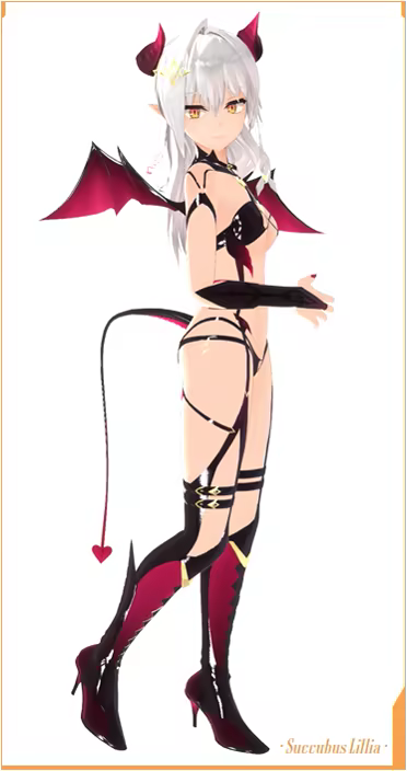 Racial traits: Lillia hails from a species that form contracts with mortals in order to secure a stable supply of nourishment. Ejaculating to this type of succubus does not lead to death. While they can fly and use teleportation and restraint magic, their physical strength is no greater than that of an ordinary person. When selecting humans, they care little about physical appearance and place full emphasis on the flavor of the cum produced. As they do not understand human concepts of love and affection, they prefer purely physical relationships.