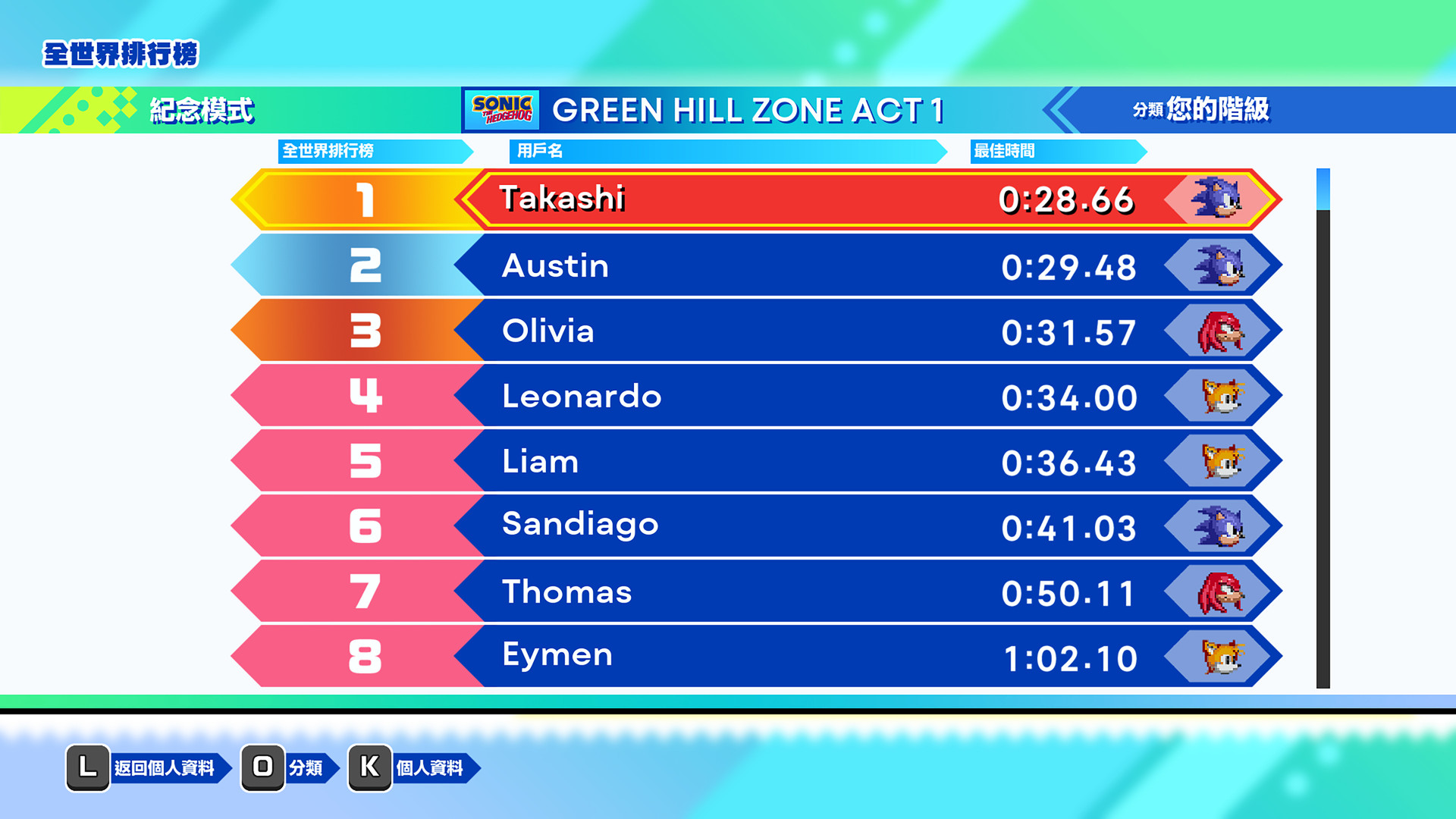 在「紀念模式」中,將會去除生命制的GAME OVER等設定,讓玩家能更加輕鬆地遊玩。另外,還能使用索尼克以外的角色,如塔爾斯和納克魯斯來享受遊戲!