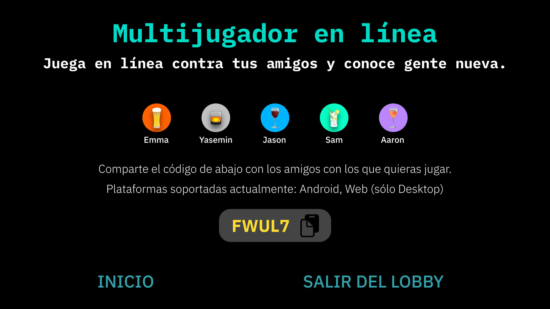Drynk es ahora también un juego de beber en línea. Esto hace que Drynk sea el juego perfecto tanto si estás de fiesta en casa, en pareja o con varios amigos, como si quieres conocer gente nueva por Internet. Si tienes ganas de fiesta, invita a tus amigos a tomar una copa con Drynk antes de ir al siguiente bar o club.