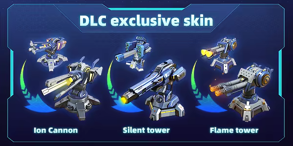 The Special outfit pack consists special skins for three kinds of survival mode defence towers:Silent Tower, Flame Tower and Ion Cannon.