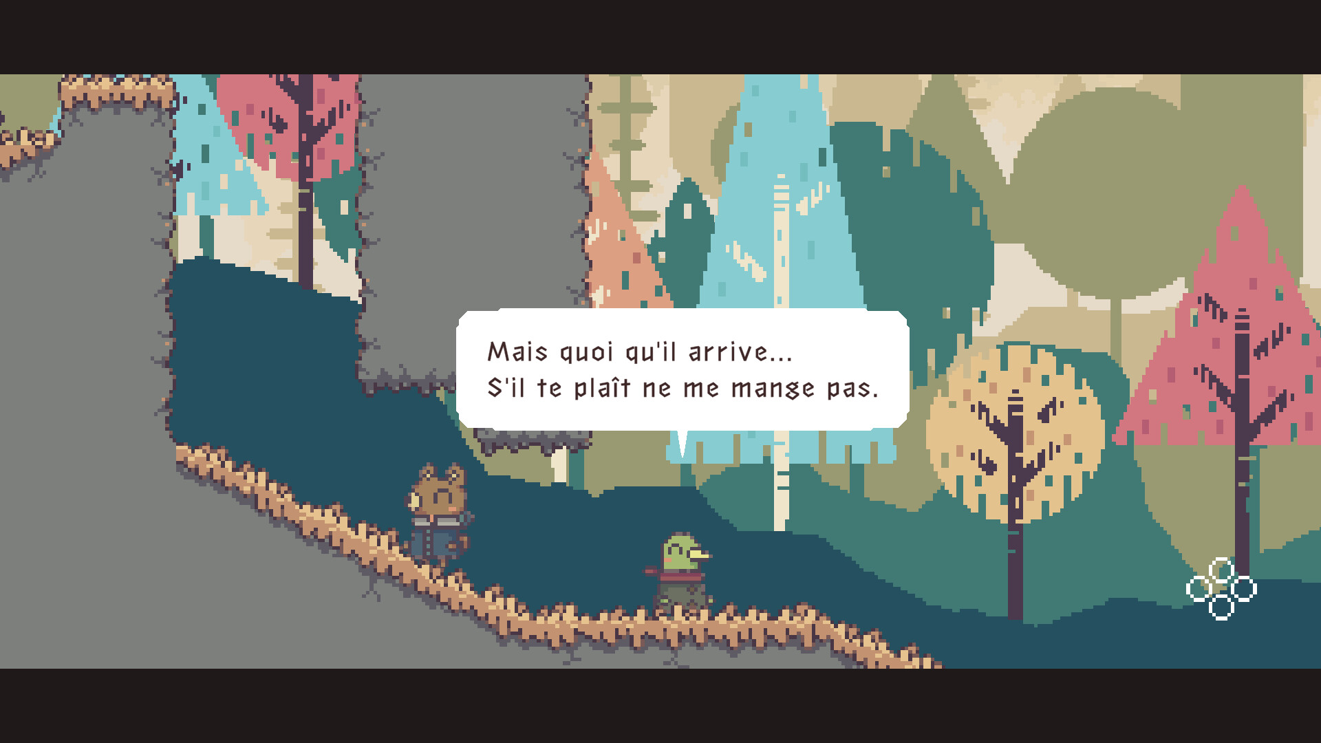 Même si le même personnage est affiché sur vos deux écrans, il peut ressembler à un animal sorti d'un livre d'images pour l'un d'entre vous, et à un robot pour l'autre. (Les objets avec lesquels vous pouvez interagir peuvent également bouger différemment pour chacun d'entre vous !)
