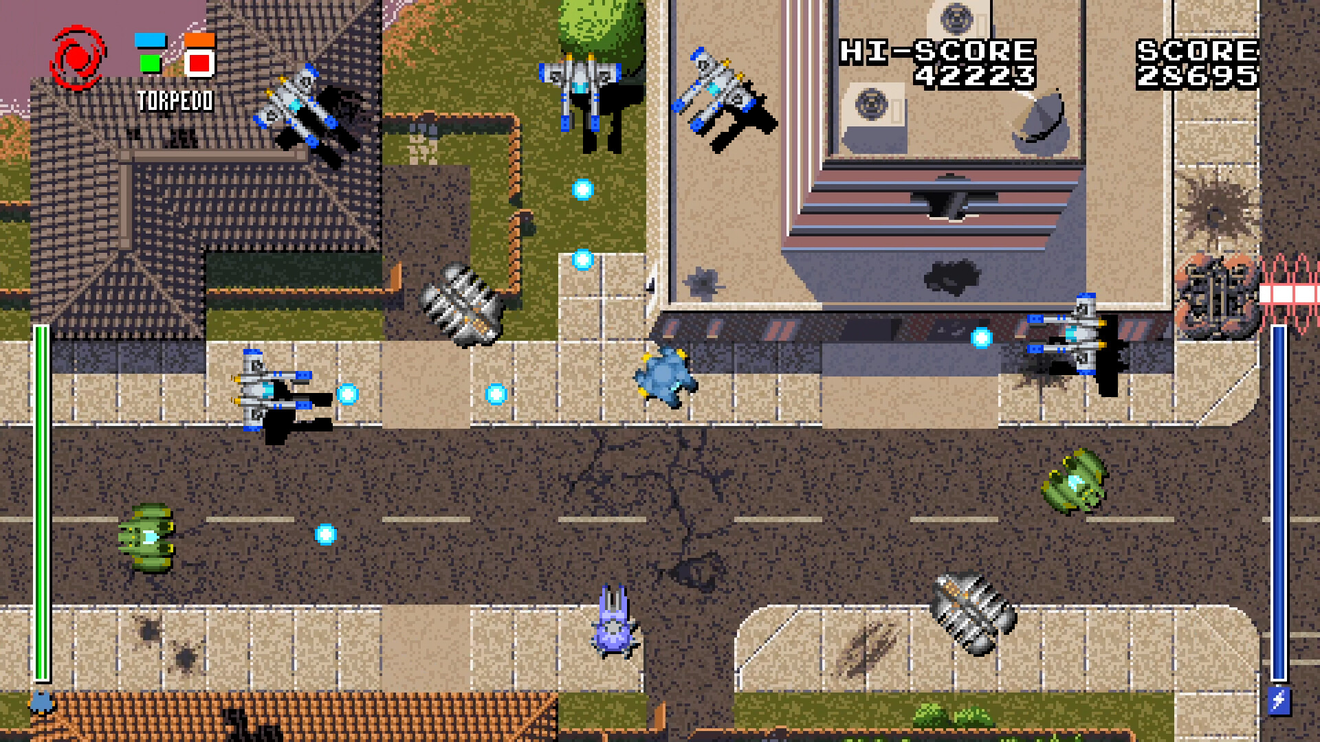 Falconet is a retro-style twin stick shooter with smooth weapon switching and quick reaction gameplay. Travel through unique levels, solve puzzles, and use your diverse arsenal of weapons to efficiently eliminate an army of rogue machines, rescue human survivors, and rack up high scores.