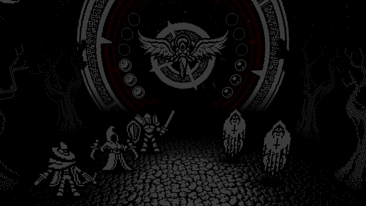 Grim Road is a roguelike with turn-based combat set in a hopeless dark world. The Sun has disappeared, and heroes have to travel through dying lands to slay Archdemons and get a chance for humanity to survive. It's Gothic, it's Black&White, and has a lot of dithering.