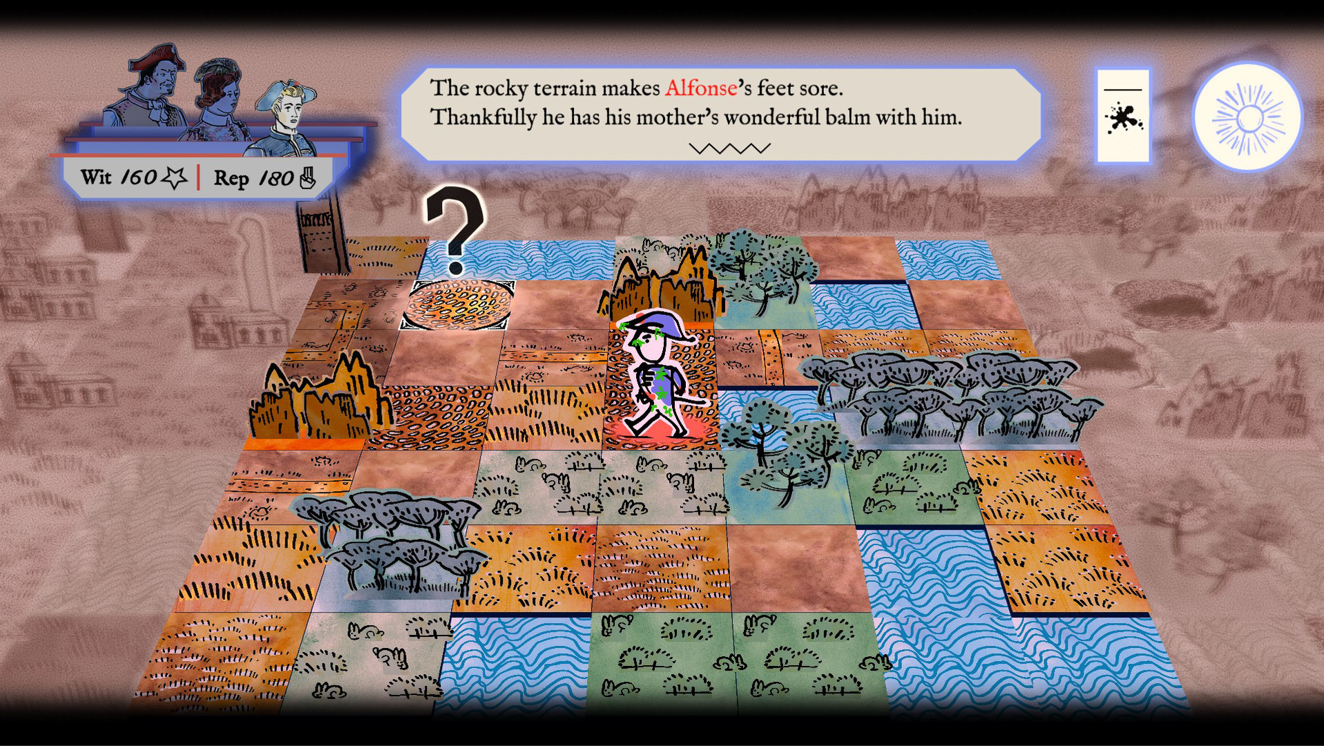 A 1st impressions roguelite, with real spanish rogues! Wander into Adventure. Solve matters of Honor. Romance remarkable people. Outwit pushy specters. Adapt your 3 heroes' character traits to win over both friends and enemies, weaving together a tale of passion, swash and demonic influences.