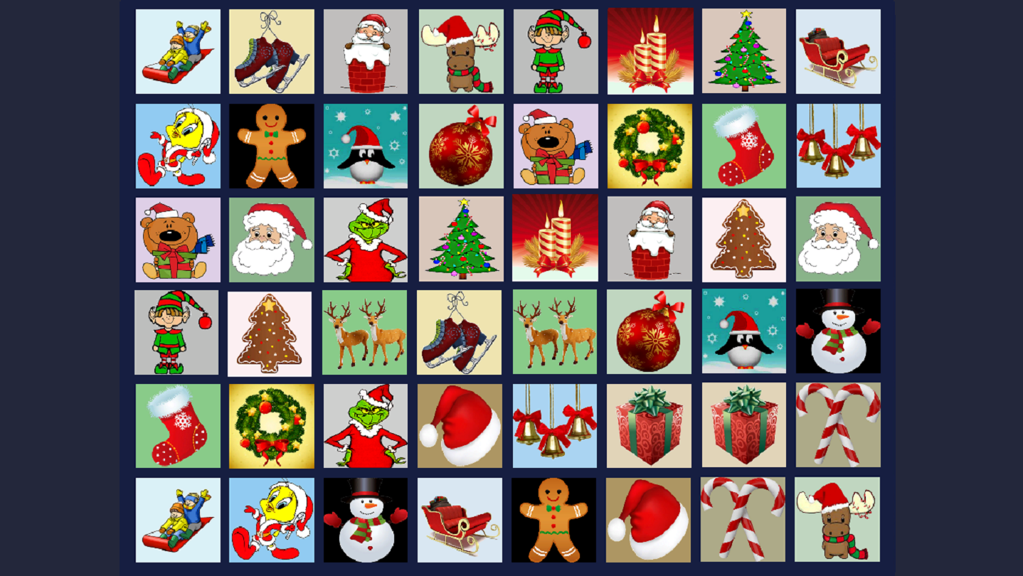 • The player clicks a pair of covered images to uncover them and see if they match. If they do not, they are covered again.