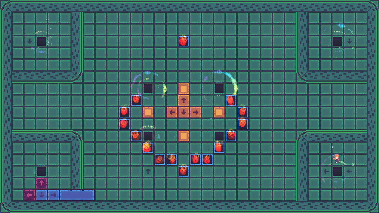 After your character is blocked by a wall, you can build a bridge with keys. Wherever there's a Key, you can get through. Accordingly, you lose the ability to move in the Key direction. There are also impassable flames, and portals that help you move over long distances on the map.