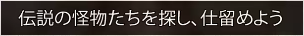 伝説に登場する怪物たち。彼らの足跡や血痕を追いましょう。風向きに注意し、接近する際に嗅ぎ出されないようにしましょう。
