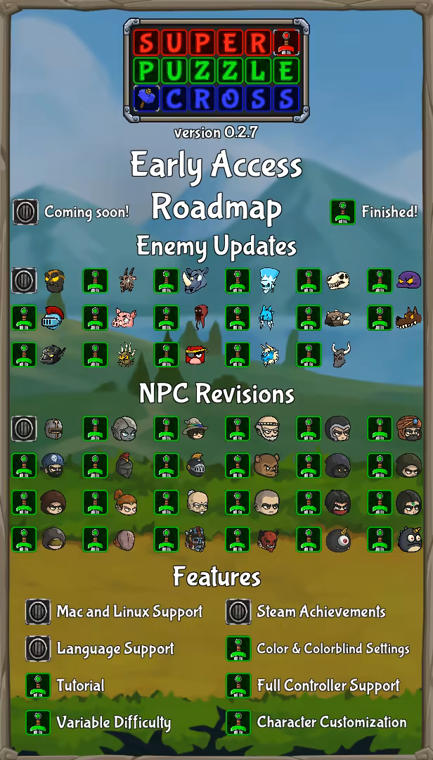 “Super Puzzle Cross already provides a full puzzle rogue-like experience for players to enjoy while final features are being developed. Early Access will also allow players to participate in game balancing through the community discord.”