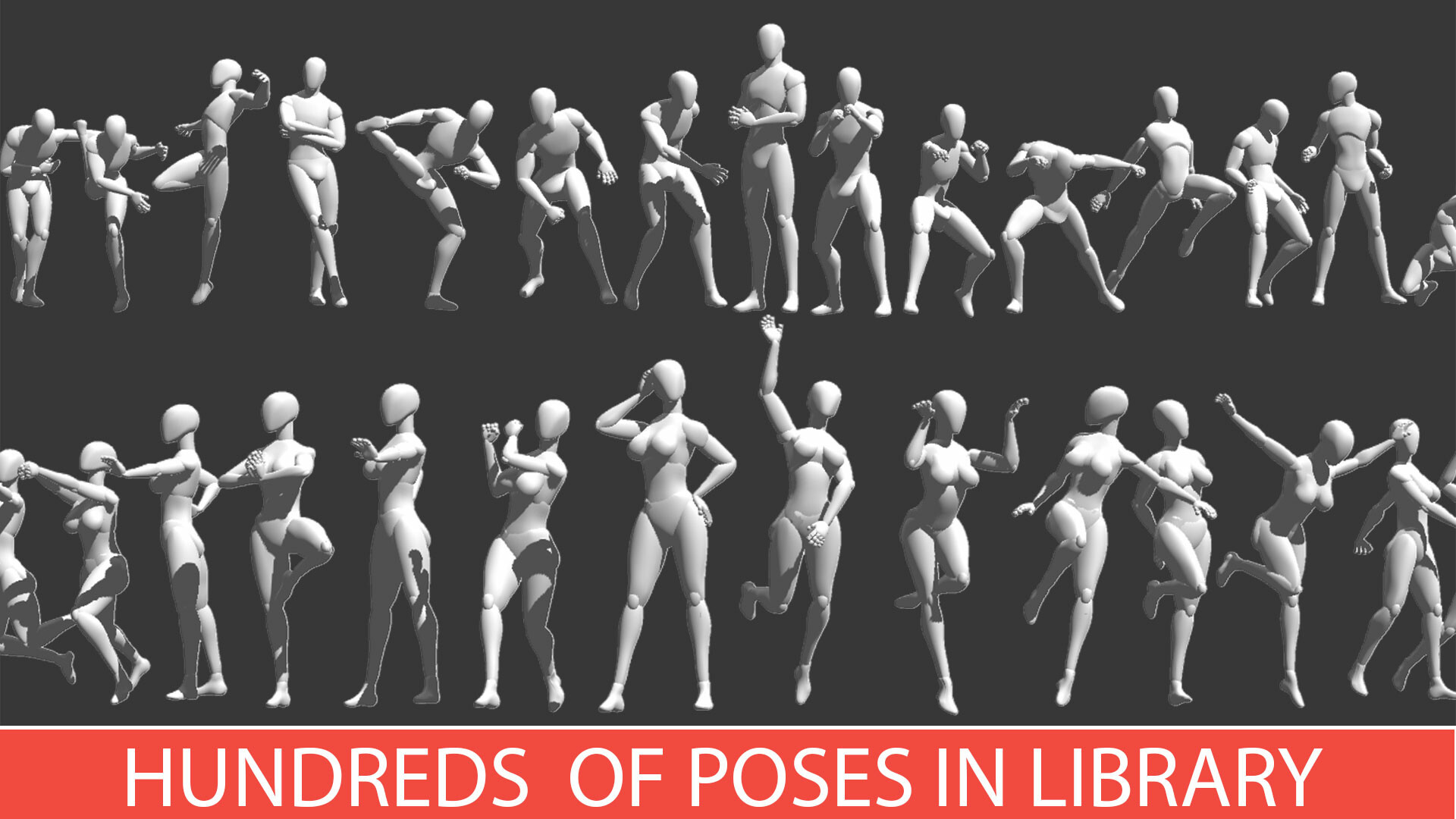 Pose the new male and female models with an accurate deformations and proportions