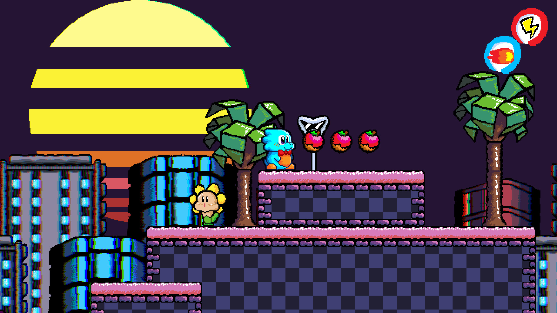 Dono has a wide variety of abilities! with them you will platform your way to get back that fruit!