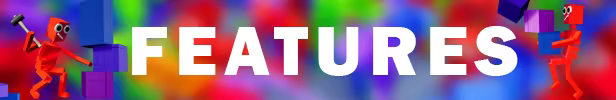 The game contains a varied collection of projectile based weapons, Jump pads, and Obstacles for you to play with. There are different explosives that vary in destructive power as well as the manner in which they release their energy.