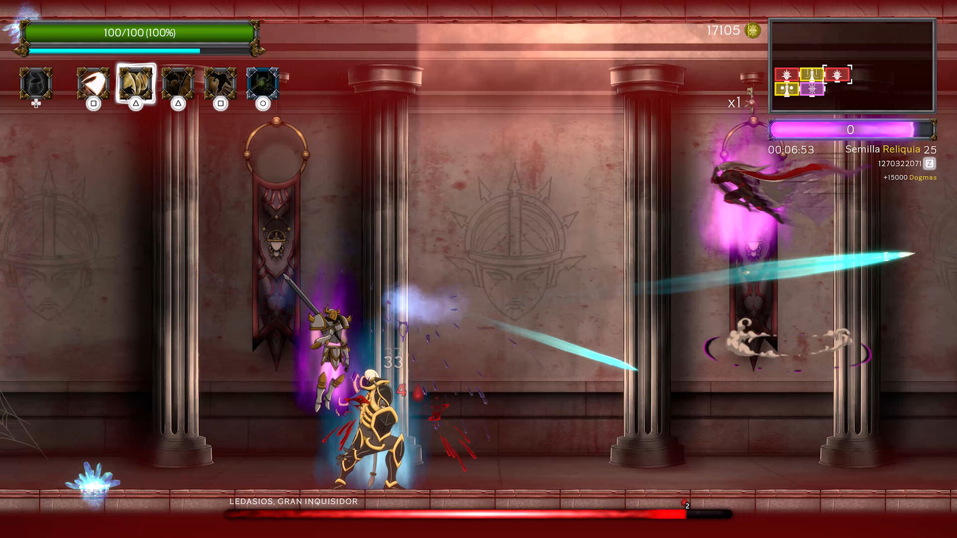 Summum Aeterna features an interesting multiplayer and cross-platform feature, the so-called "Board of Champions".This mechanic records the highest level seed completed in the shortest time possible by each competitor. There is a leaderboard for influenced seeds and another one for standard seeds.