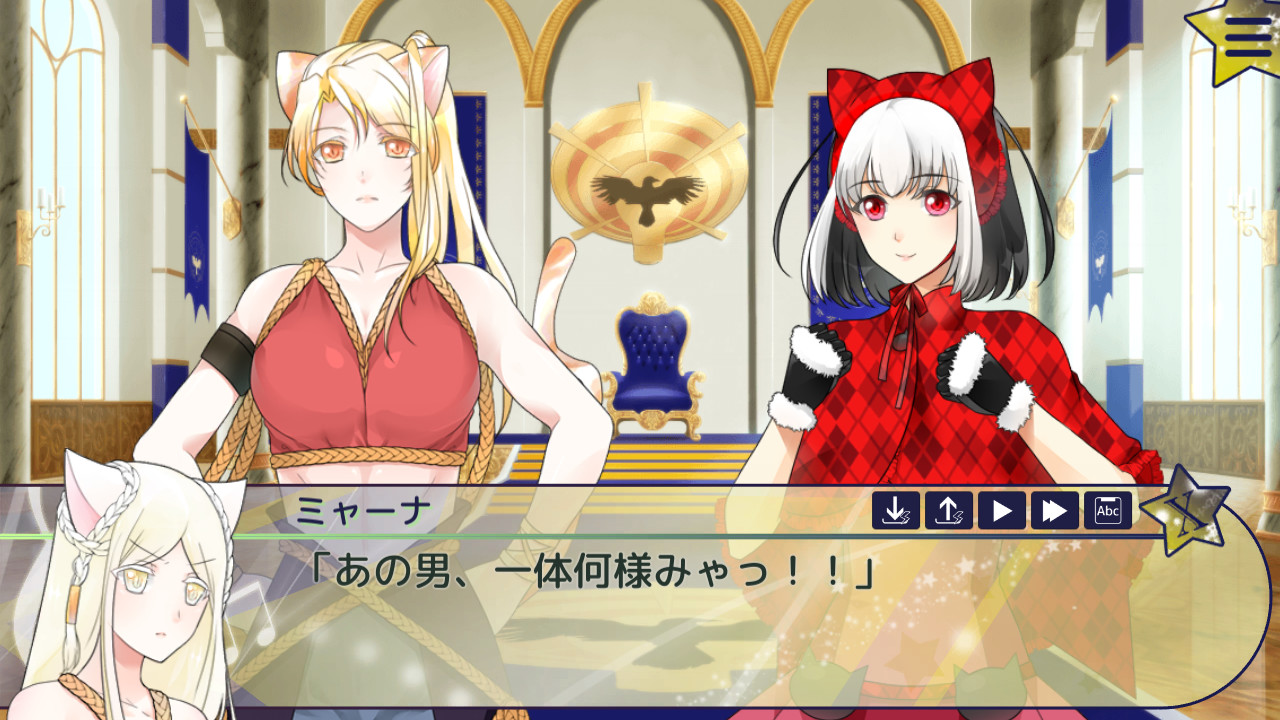 今回ルクレシア(半人半猫)の国「ラズ」の長として、ミャーナ姫は人間の国「エルーリア」を訪れることとなった。