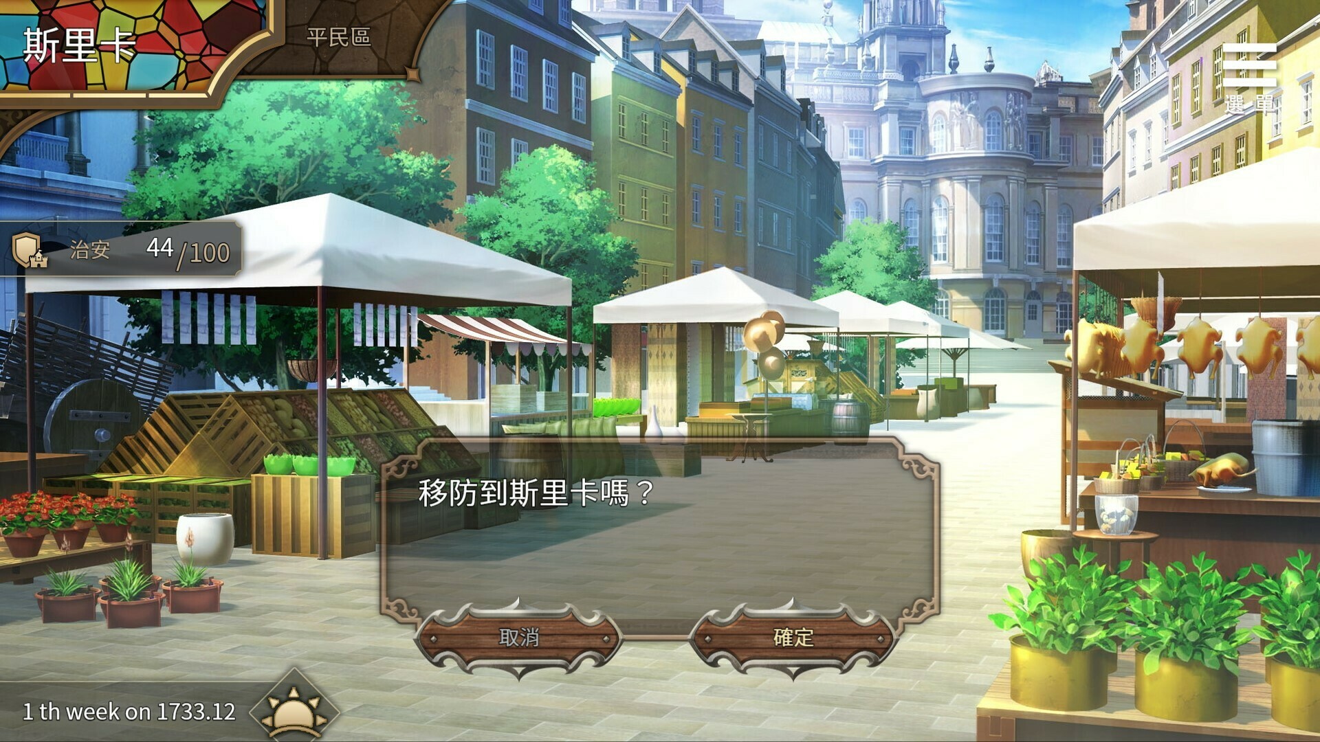 玩家可以在領地中實行【治安】以提升徵兵量、降低盜賊的機率、【徵兵】,並且回到軍團營地進行【訓練】。