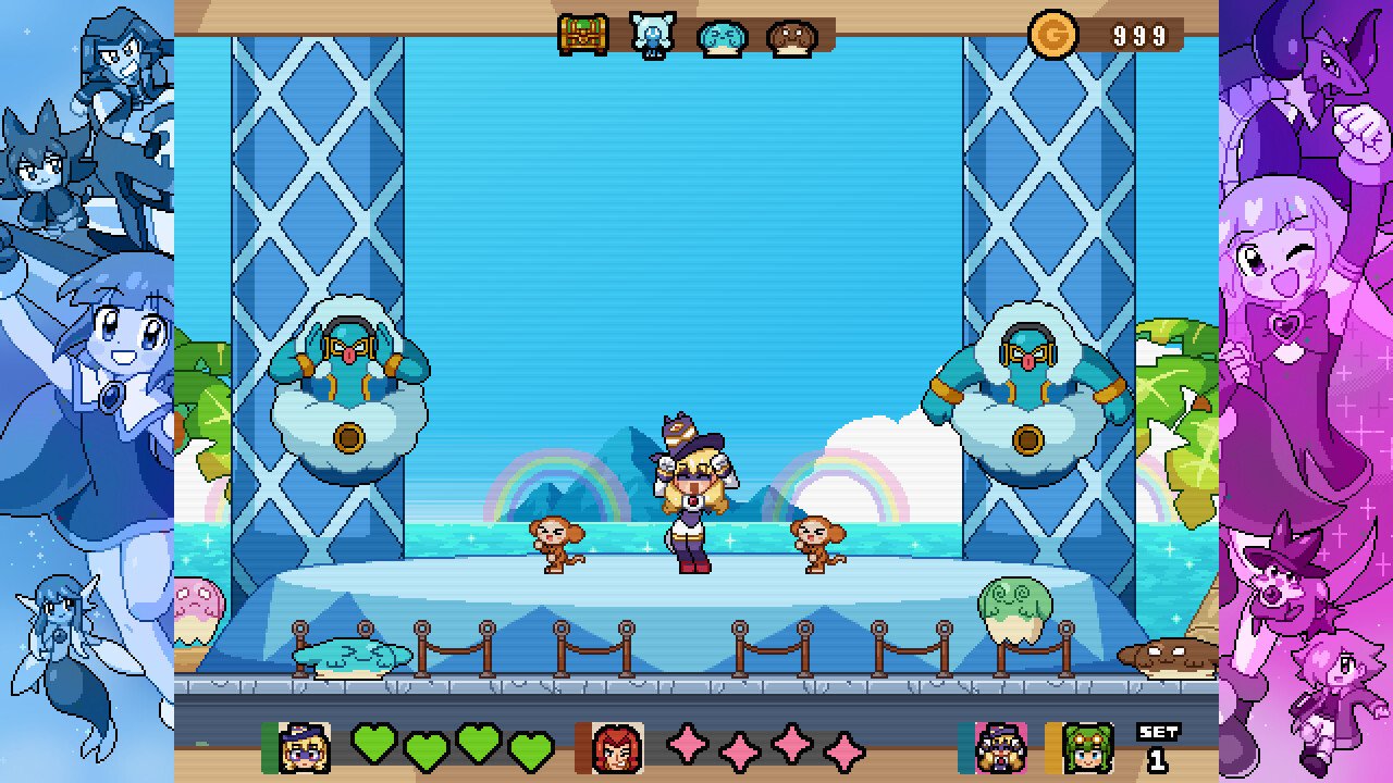 The game features a "Story Mode" that lets you enjoy the Sunday morning feeling and an "Adventure Mode" that is similar to traditional platforming action. Use the coins you collect to unlock power-ups, dances, unique characters, monster books, and cards! There is also a "Boss Rush Mode" and a "Mini-Game Mode".