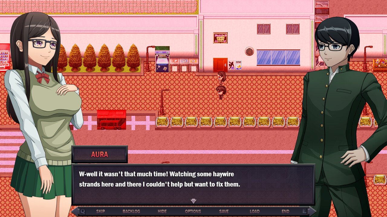 • The player watches cutscenes displaying Aura's real self changing over time due to mental corruption. The cutscenes are told from varying character perspectives (Aura, her best friend Rose, her boyfriend George, and so on).
