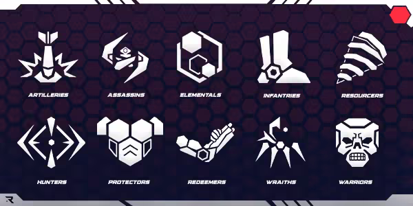 Your Faction's « Elite » Robots will define your gameplay, with the 6 other common Robots Archetypes.