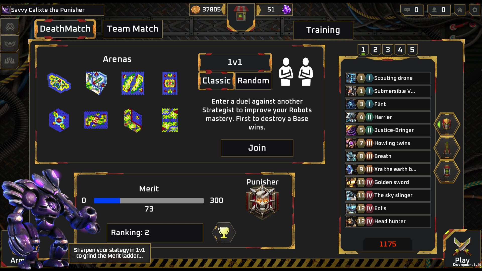You're a Strategist, a war commander with sharp skills and unrivaled tactics, leading your Faction and its army of Robots on the Arena.