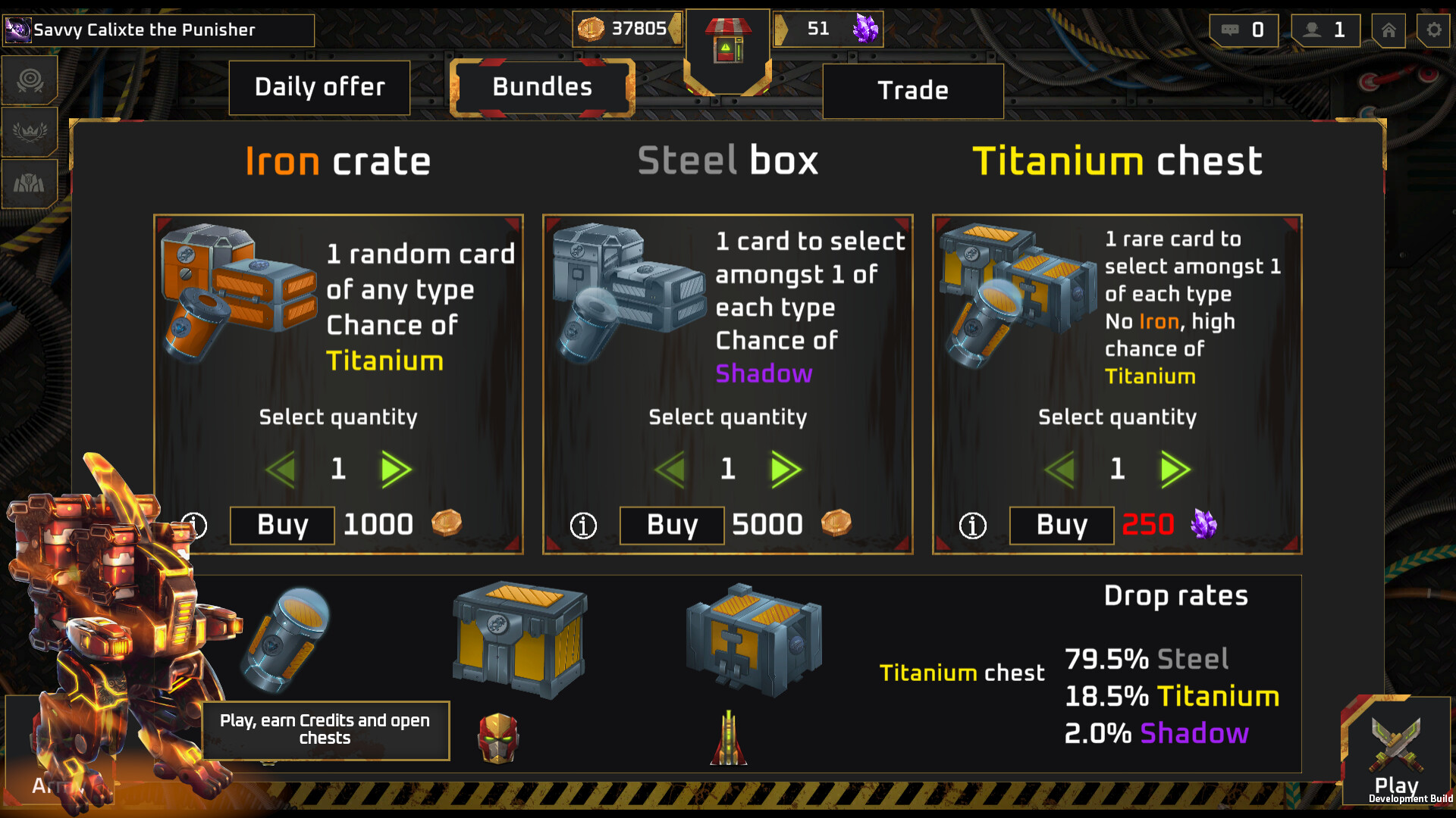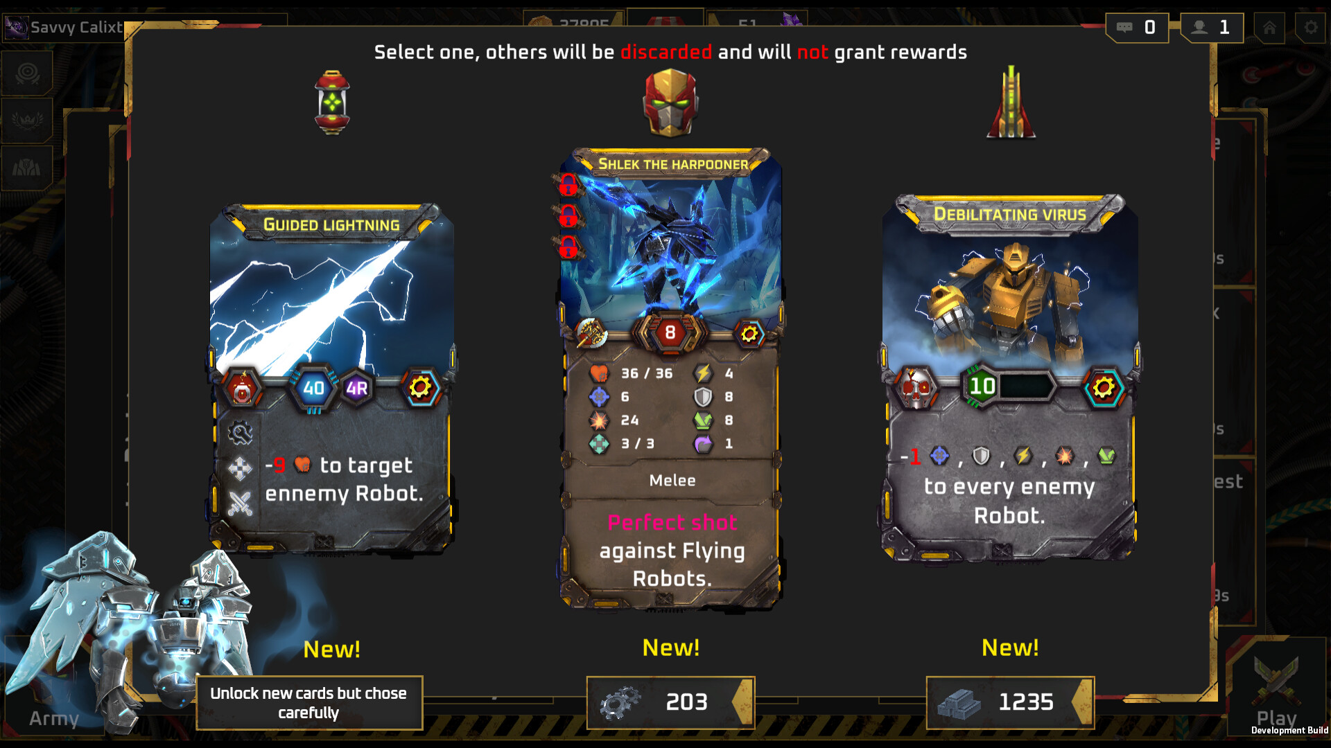 Our game currency (Credits) as the premium currency (Xenoshards) offer the possibility to unlock new Robots and access to cosmetics less or more quickly, without blocking the progression of players or the acquisition of in-game advantages.