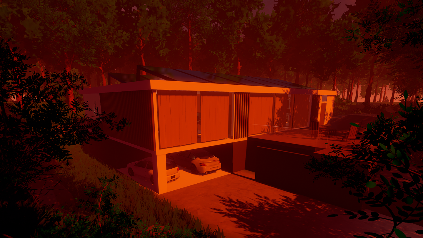 You assume the role of Luigi, a zesty food delivery driver, and your first delivery takes you to a newly-built house outside of town. It's an imposingly modern villa, like one you would see on ArchDaily's Instagram account; Smooth angular surfaces, a big driveway, lots of windows to peek into... You have a chat with the charismatic owner, hand over the food, and get on your way.