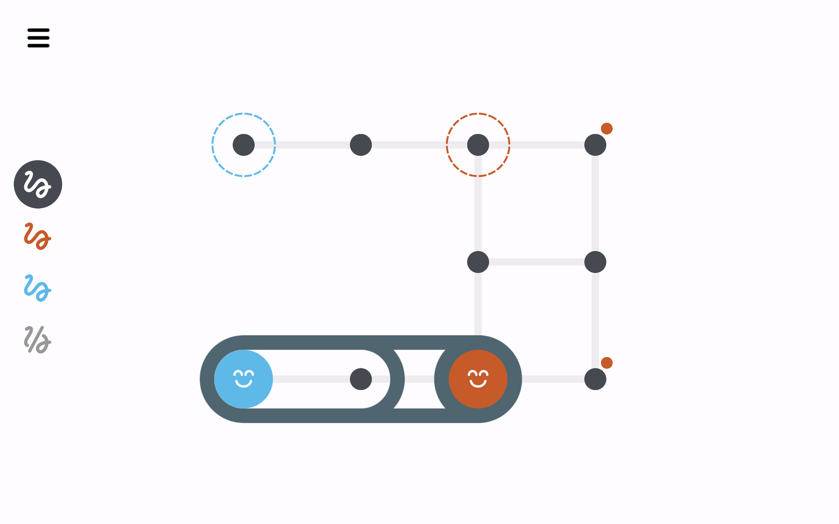 Slidetracked is a minimalist puzzle game where you draw coloured paths to make Red and Blue reach their goals without getting in the way of each other. It starts out as simple as it looks, but gets challenging as you dig deeper into the subtleties and consequences of the mechanics.