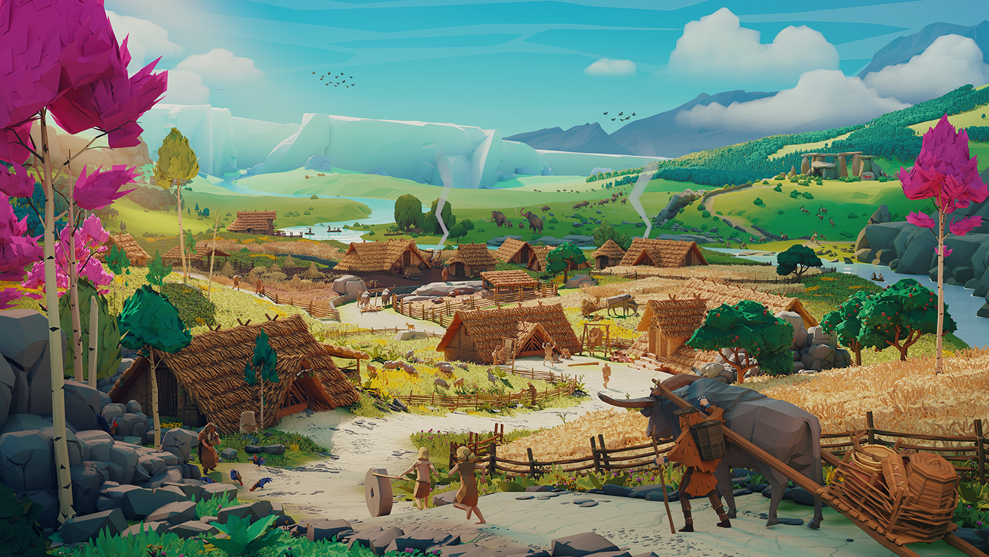 The Polylithic universe is a vibrant place, with a world only barely touched by human presence. Search for resources in tall forests, snow-covered hills, and raging river rapids. Hunt all manner of animals to feed yourself and your tribe. A hint of sci-fi mystery lingers in this ancient world. Search for other human tribes (or what's left of them), learn from their mistakes, and build monuments in their memory, all set against a backdrop of vibrant colors and beautiful low-poly landscapes.