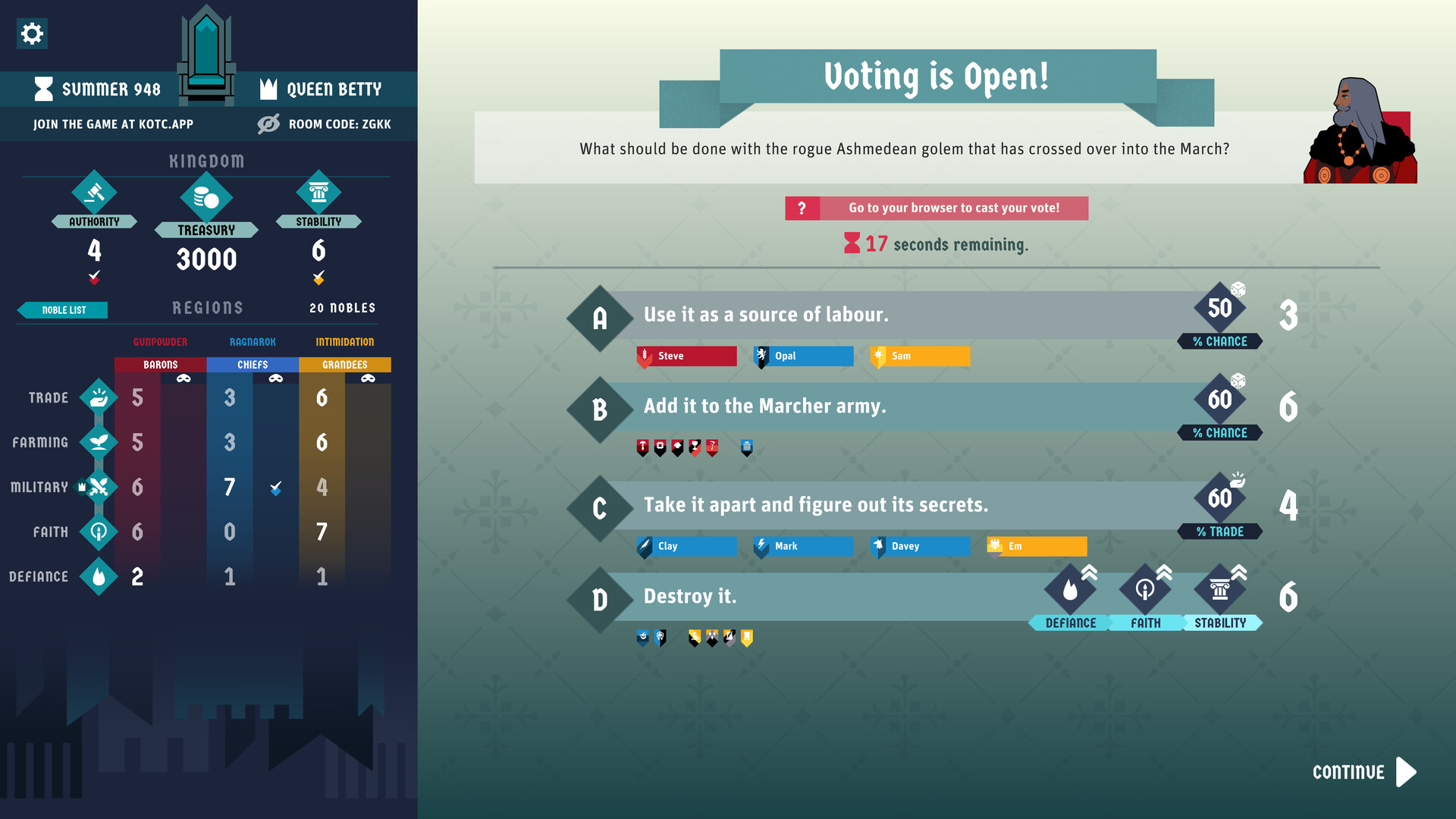 King of the Castle is a multiplayer game of shifting power dynamics and intrigue. Host games of 3 to 24 other players who join as the 'loyal' Nobles of your Council, voting on your decisions - and twisting the story to their own sinister ends.