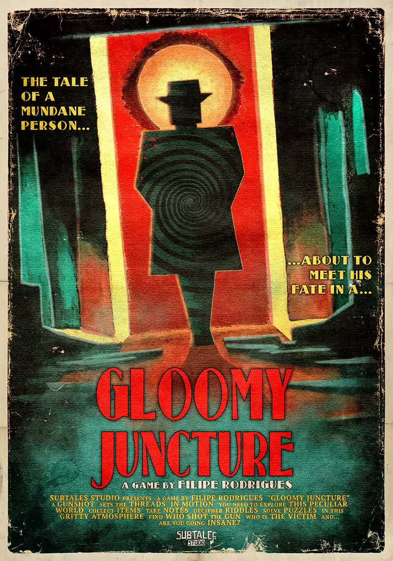 Gloomy Juncture is inspired by neo-noir films, psychological dramas, weird B-movies, the works of Hitchcock, Lynch, Aronofsky, and European horror, blending a cinematic narrative experience with hardcore gameplay reminiscent of '90s adventures. Exploring themes of obsession, unease, and hopelessness.