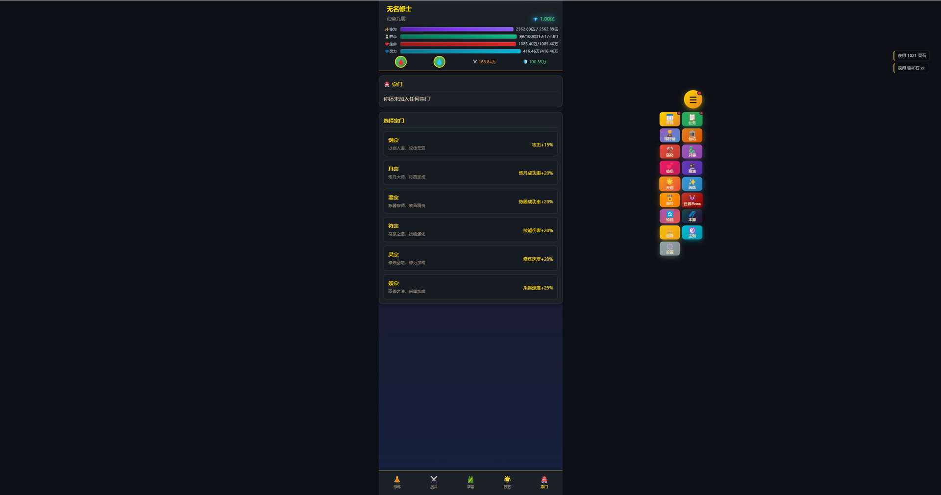 游戏玩法: 挂机升级,打怪拿装备,去灵界创建宗门
