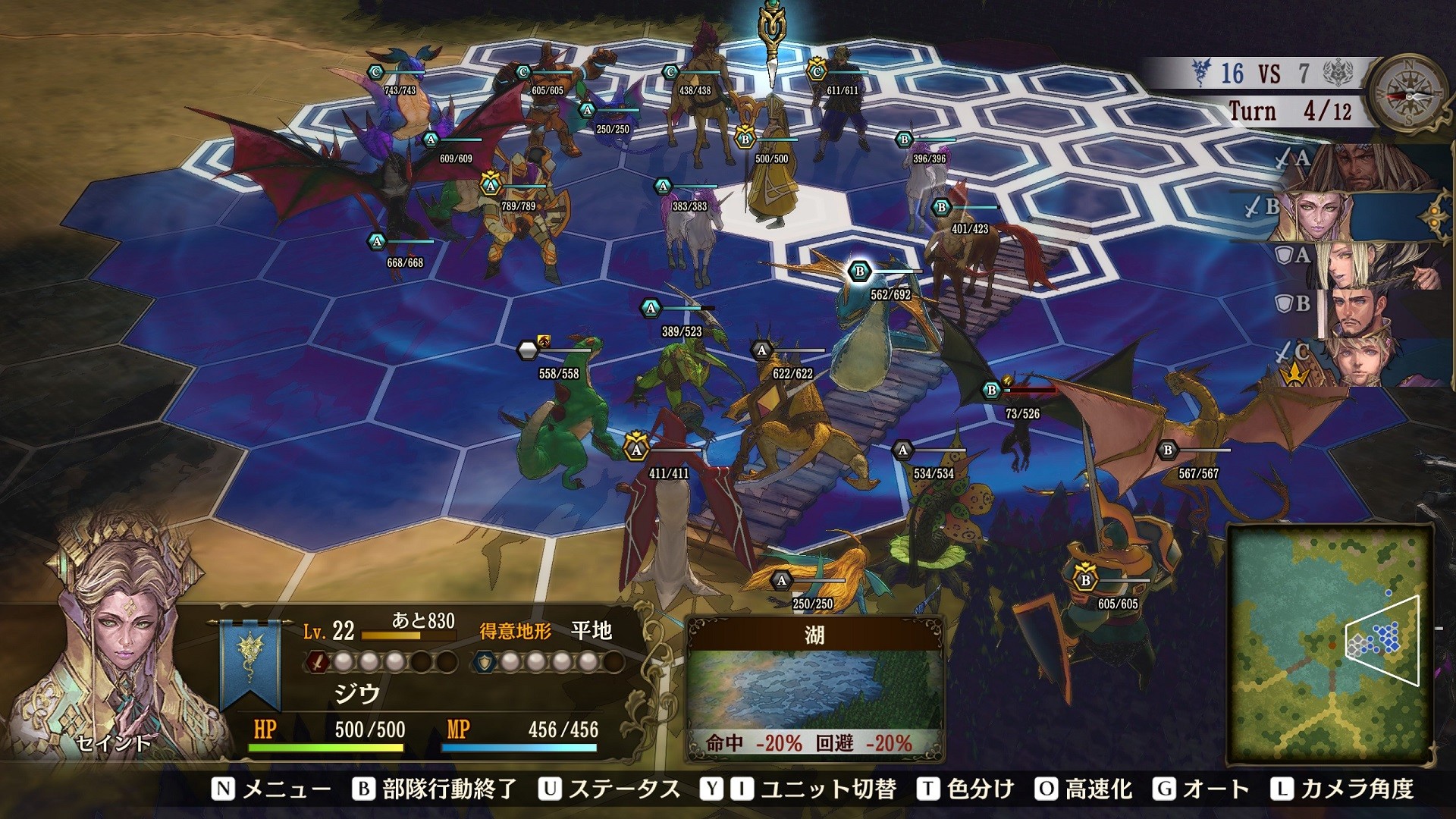 ルーナジア大陸は「編成フェイズ」と「攻撃フェイズ」を経て節が経過し、時を刻みます。「編成フェイズ」では来るべき戦いに備え、多種多様なクラスやスキルを持つ騎士とモンスターで部隊を構成します。「攻撃フェイズ」では、ターン制で進むヘクス(六角形)で構成されたバトルマップでの部隊戦が繰り広げられます。ユニットのスキルや属性、包囲効果や地形効果、部隊戦術で勝利をつかみましょう。登場する全ての国、騎士、モンスター達は絶えず戦いを繰り広げ、成長していきます。「クラスチェンジ」や「装備品・アイテム収集」などの育成要素も豊富です。