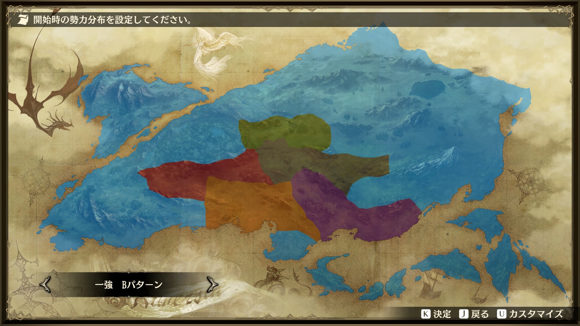 6つの勢力のいずれかを選び、史書『ルーナジア戦記』の記憶を辿りながら、ルーナジア大陸の統一を目指すモードです。