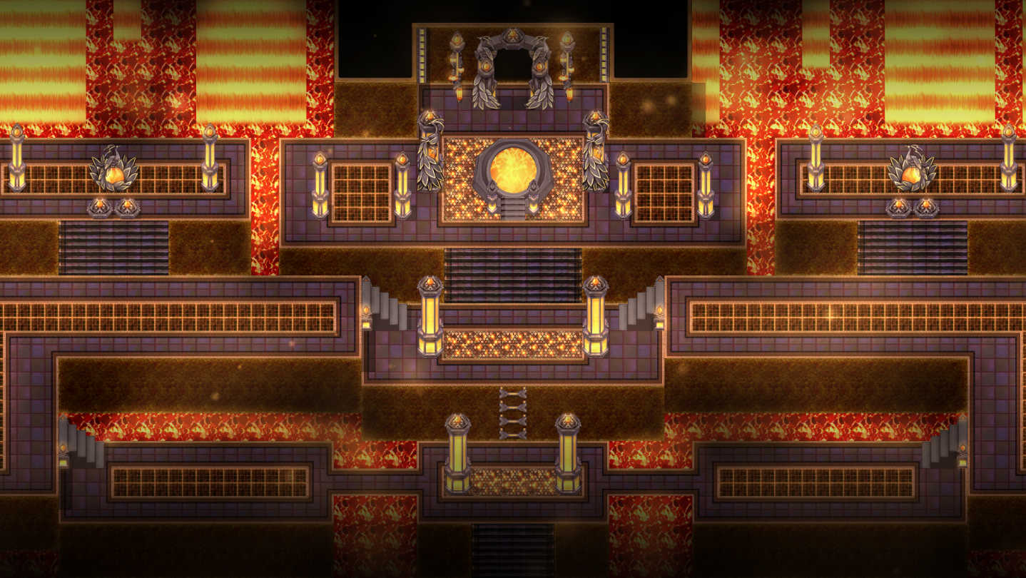 Head into the legendary Phoenix Palace with this tileset for RPG Maker! Has fiery oranges and moody purple tones, lava and of course a variety of statues for the guardians of the Phoenix!