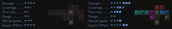 From what you manage to collect, choose your load-out of weapons, suit pieces, and various usable items. Weapons can be customized using a module system. Here, you may alter your weapons' stats by fitting mods of various shapes into a grid unique for each weapon.
