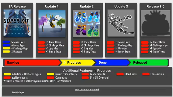 “TO THE TOP featured a unique set of mechanics for VR Platforming. Early Access for Super Kit: TO THE TOP allows you to enjoy that classic gameplay with a whole new look, while participating with us in refining and extending this new Chapter in the series.