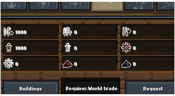 There are 25 types of resources in the game. Food is consumed by the population, materials are needed for construction and complex production, and weapons are needed for soldiers.