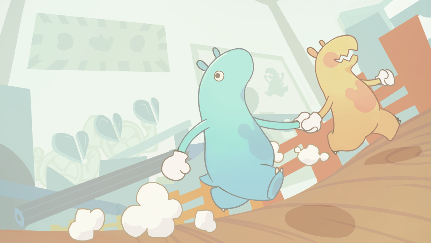 『goonect』は手をつないで進む「運命共同体」協力アクションゲーム! 相棒の手を離さないようにひっぱったり、相棒を踏み台にしてより高くジャンプしたり…協力してギミック満載のおもちゃ部屋から脱出しよう! 2人のなかよし度はどれぐらいだ!?