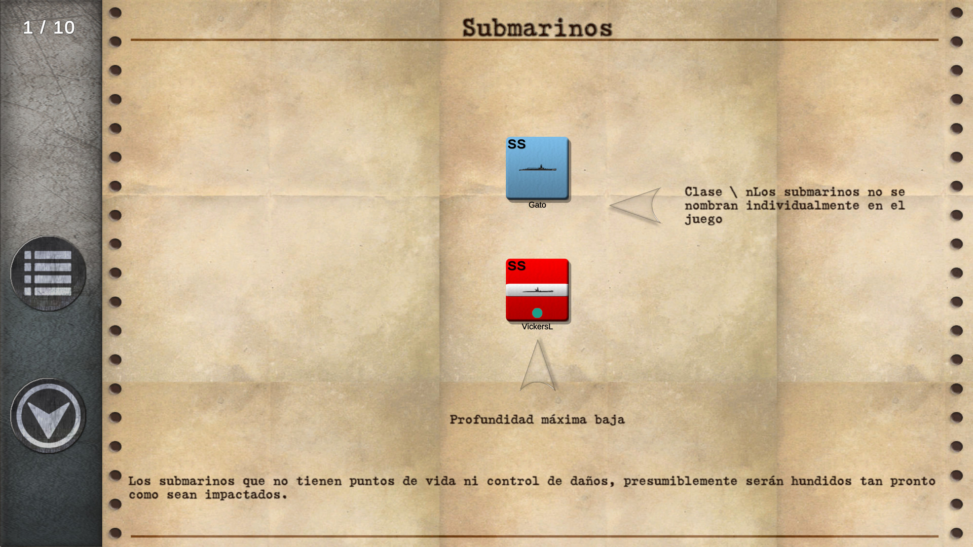 - Asigna misión y objetivo para tus submarinos durante la configuración de la mayoría de los escenarios.